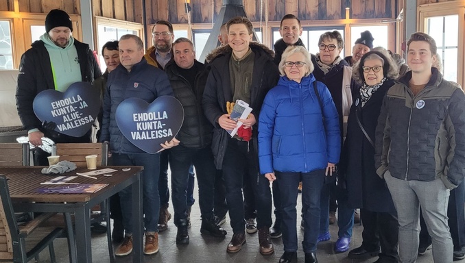 Puolustusministeri Antti Häkkäsen vierailu Riihivuoressa 22.2.2025. Paikalla oli myös runsaasti kunta- ja aluevaaliehdokkaita.