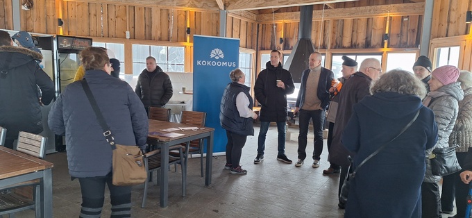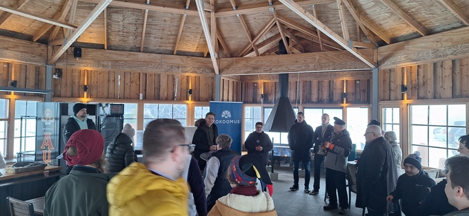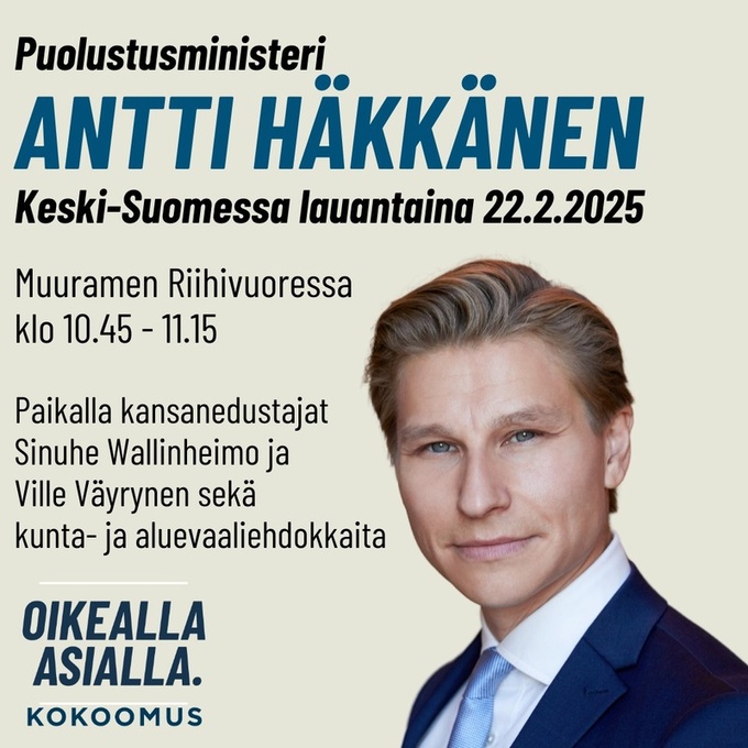 Puolustusministeri Antti Häkkäsen vierailu Riihivuoressa 22.2.2025. Paikalla oli myös runsaasti kunta- ja aluevaaliehdokkaita.